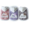 ピンク、ラベンダー、モカの落ち着いた水玉フリースとホワイトフリースの組み合わせはとっても上品な印象です。