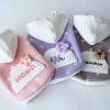 ふわふわのフリース素材で作った、ずっと着せていたくなるほどキュートなパーカーです。優しく温もりのあるデザインです。うちの子だけのオリジナル刺繍をいれることが出来ます。