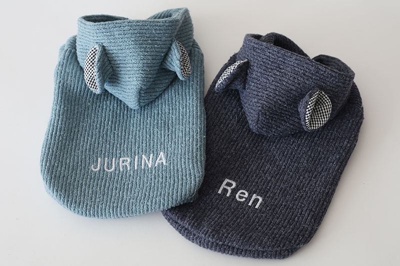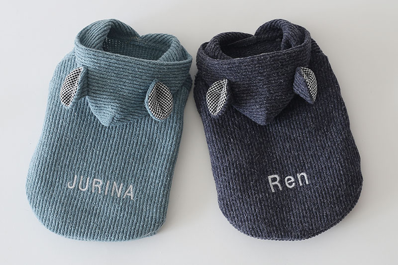 [お名前刺繍]ジャガード織ニット・くまみみパーカー | 犬服通販ドッグピース