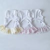 ヴェリークール素材のタンクトップと薄手のチェックコットン。スカート部分はレースとの2枚重ねでふんわり感を楽しんで。