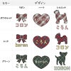 ハート柄イラストでアルファベットで名前を入れてもらいました。タータンチェックのスカートがとても可愛らしいです。ビションフリーゼのドッグシルエットやイラストがあればよいな思いました。