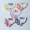 白のクールスプラッシュ生地に5色のパイピング。2つのテイストデザインと7つのフルーツから、愛犬だけの1着をご指定ください。