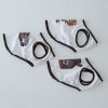 メッシュタイプで通気性のよいクールスプラッシュ生地に、落ち着いたブラウンのパイピング。なんだか少しリッチに見えるデザインです。