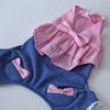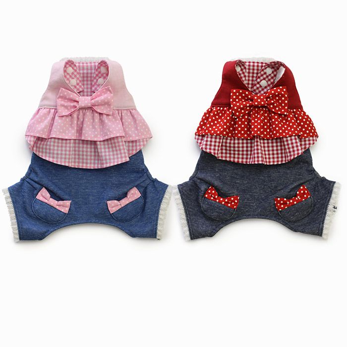 ピンクプリエ・ドットチェックリボンカバーオール | 犬服通販ドッグピース