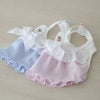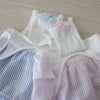 ふんわり風をはらむ、淡いピンクとブルーのリップルストライプ。 やさしい肌ざわりのコットンと、ひらひら揺れるフリル。