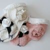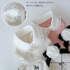 黒のベルベットリボンとホワイトローズのコサージュが、まるで高級ドレスのような仕上がり。