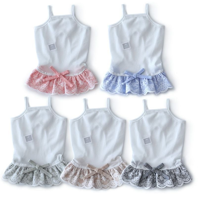 胸部はクールMAXキャミソール。スカート部はダンガリー生地にレースを重ねた素敵デザイン。