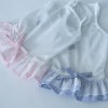 胸部はクールMAXキャミソール。スカート部はストライプとチェックの涼しけなコットン生地にレースを重ねた素敵デザイン。