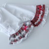 コットンのタータンチェックとレースの2枚重ねスカートです。首周りにもレースをあしらいました。