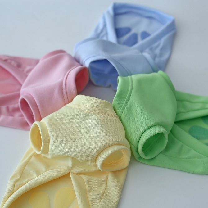 サイズ表の体重はあくまで目安です。できるだけ胴回りサイズを測って、胴回りが窮屈ではないサイズを選んでください。毛が多めのワンちゃんの場合はワンサイズ大きめを選んであげてください。