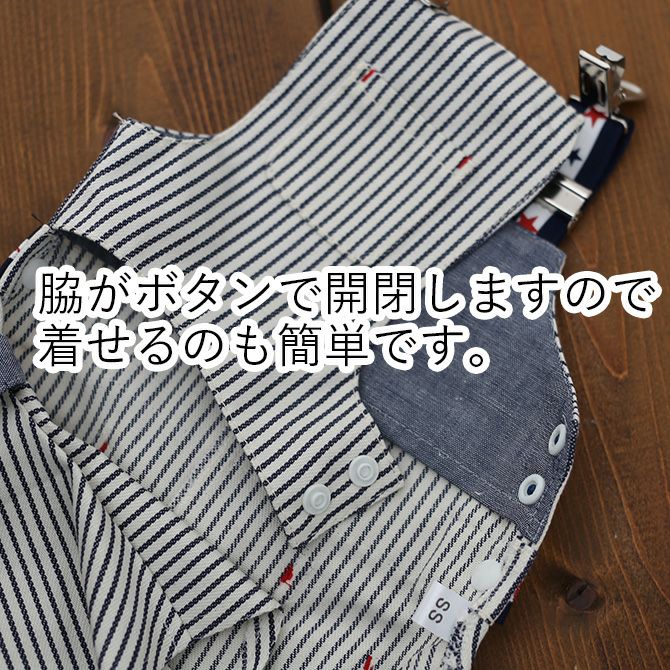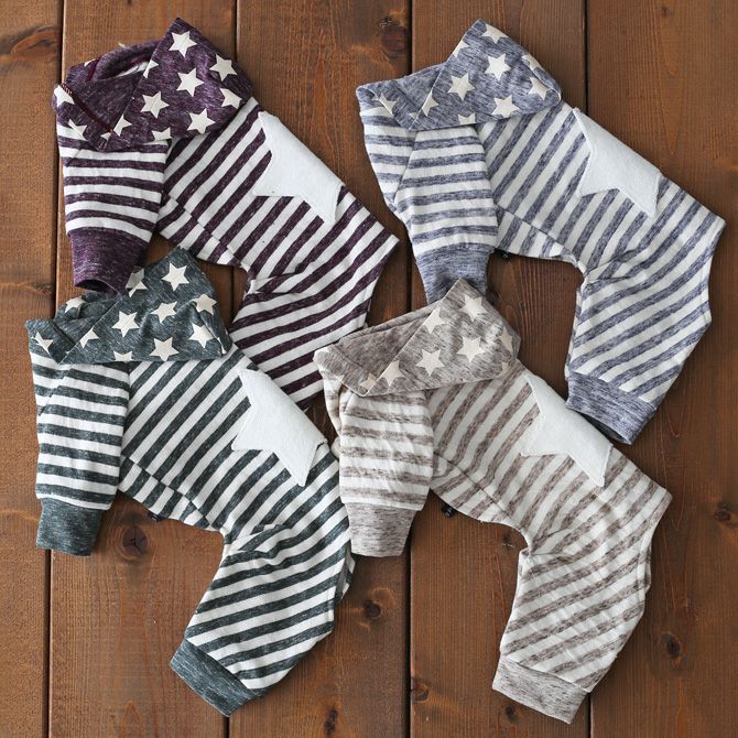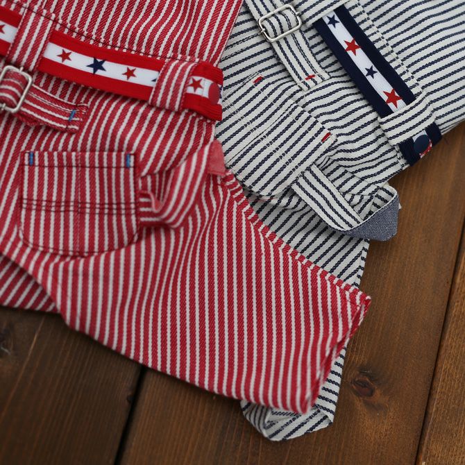 スターアップリケ・ダブルガーゼボーダーカバーオール