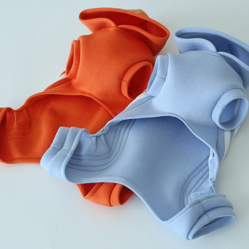 サイズ表の体重はあくまで目安です。できるだけ胴回りサイズを測って、胴回りが窮屈ではないサイズを選んでください。毛が多めのワンちゃんの場合はワンサイズ大きめを選んであげてください。