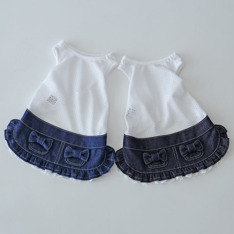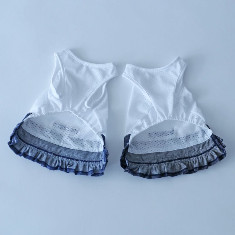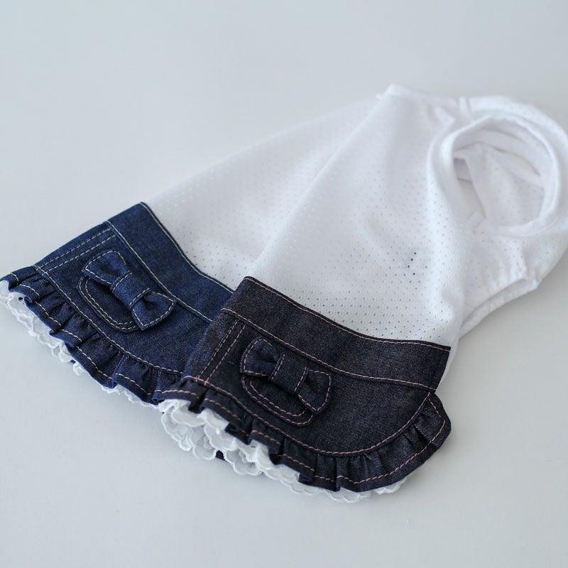 メッシュインナー岡山デニムギャザーフリルスカート