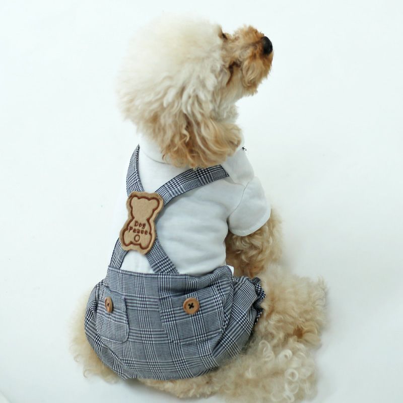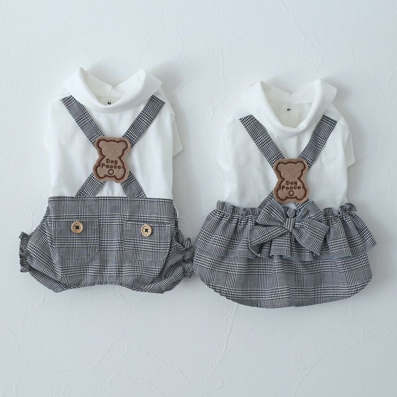 クラシックチェック・くまワッペン・サロペット