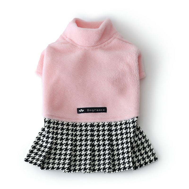 フリースハイネック千鳥格子ワンピース