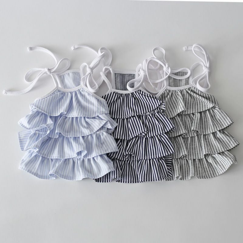 クールMAXストライプ段フリルキャミソール