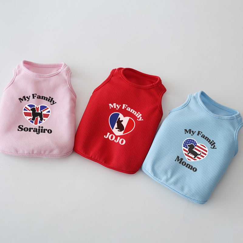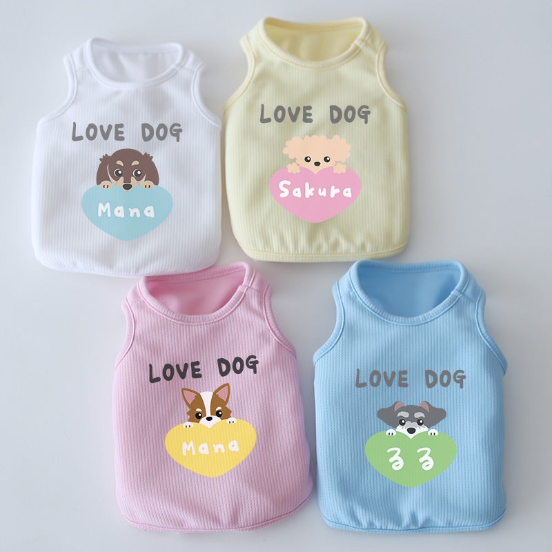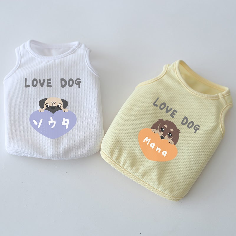名前を入れたドッグウェアって、不思議ととってもかわいく見えるんです。たぶんそれは、飼い主さんの愛情が目に見えるようになるからだと思います。