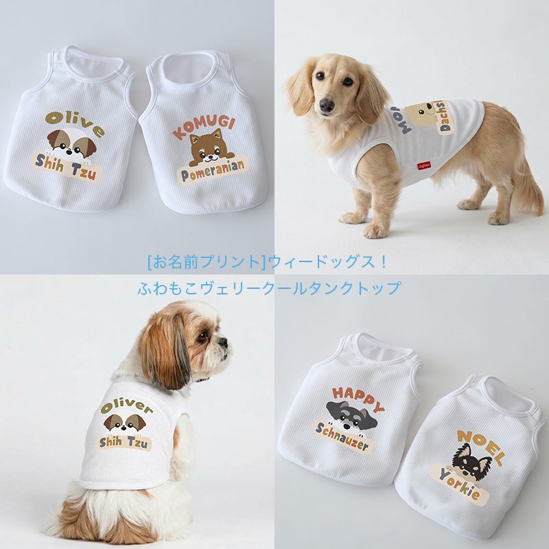 プリントや刺繍でお名前を入れて、愛犬だけの1着を作れるドッグウェアです。