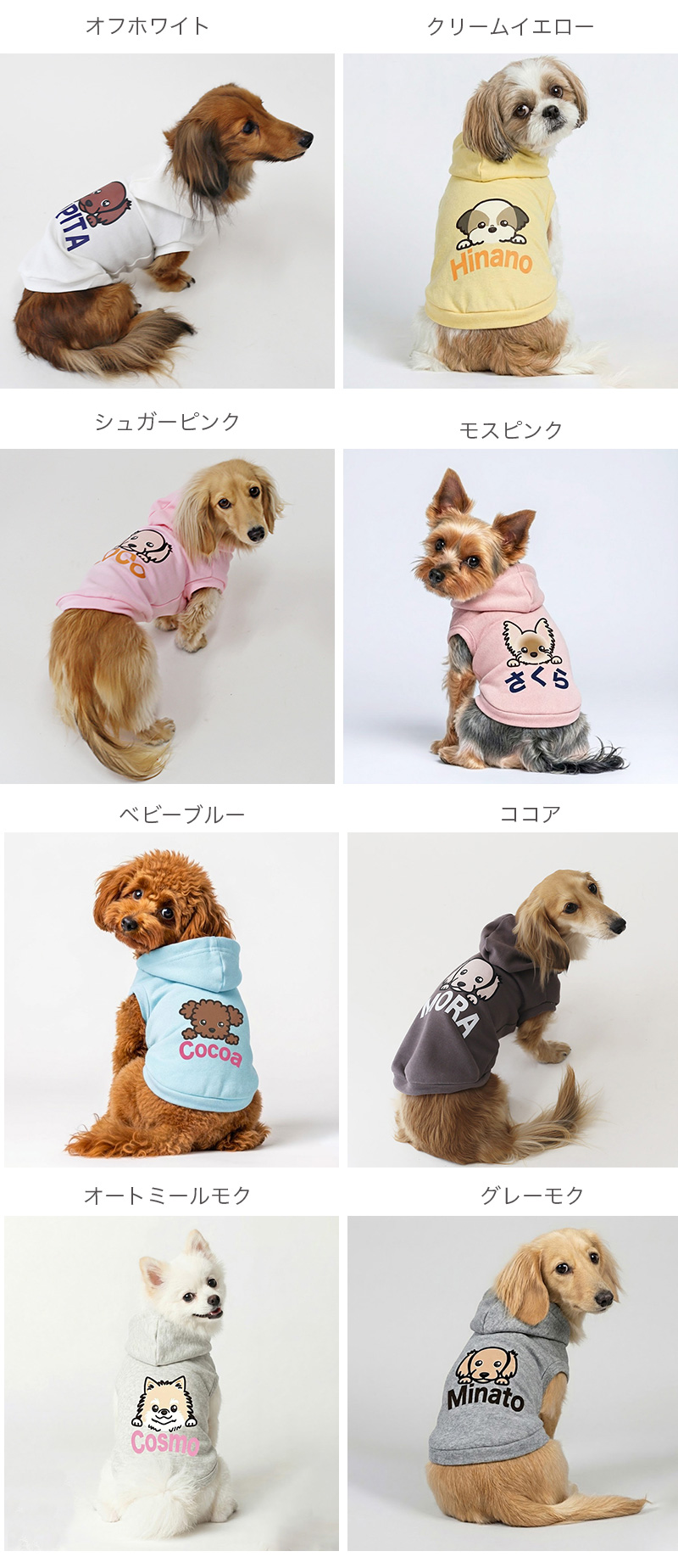 無地のエブリデイプレーンパーカの他にも、さまざまなラインナップをご用意しています!愛犬だけのパーカーをお楽しみください。