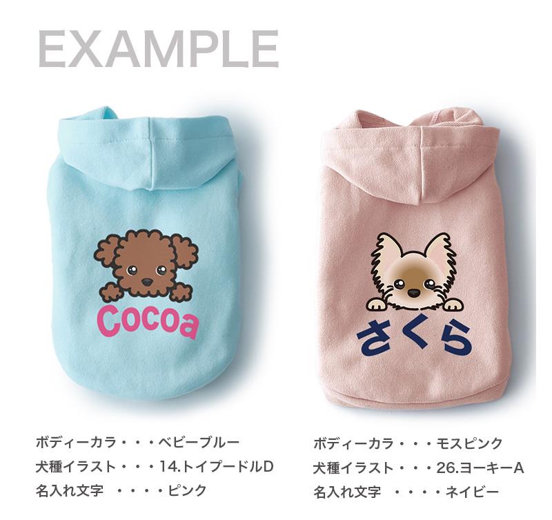 選べる犬種イラストとお名前をプリントした、うちの子専用パーカーができました。