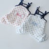 やさしいドット柄と肩の可愛らしいリボンの組み合わせは、愛らしさたっぷりなのにどこか上品。。