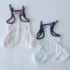背中にちょこんと浮かぶボーンモチーフに、うちの子のお名前をのせて。 いつものお散歩道も、いつものお昼寝時間も、少しだけ特別に見えてくるドット柄のロンパースです。
