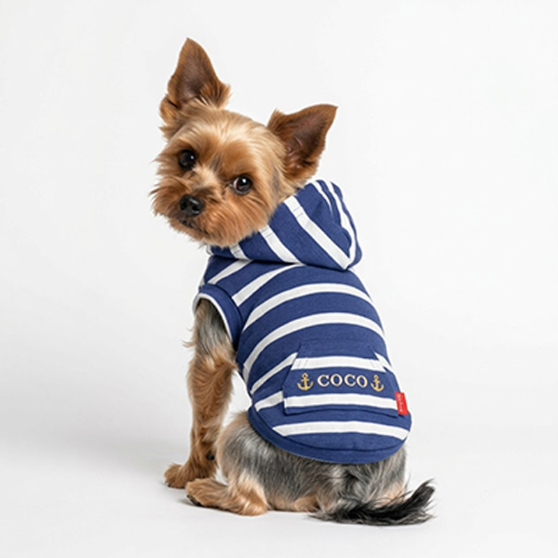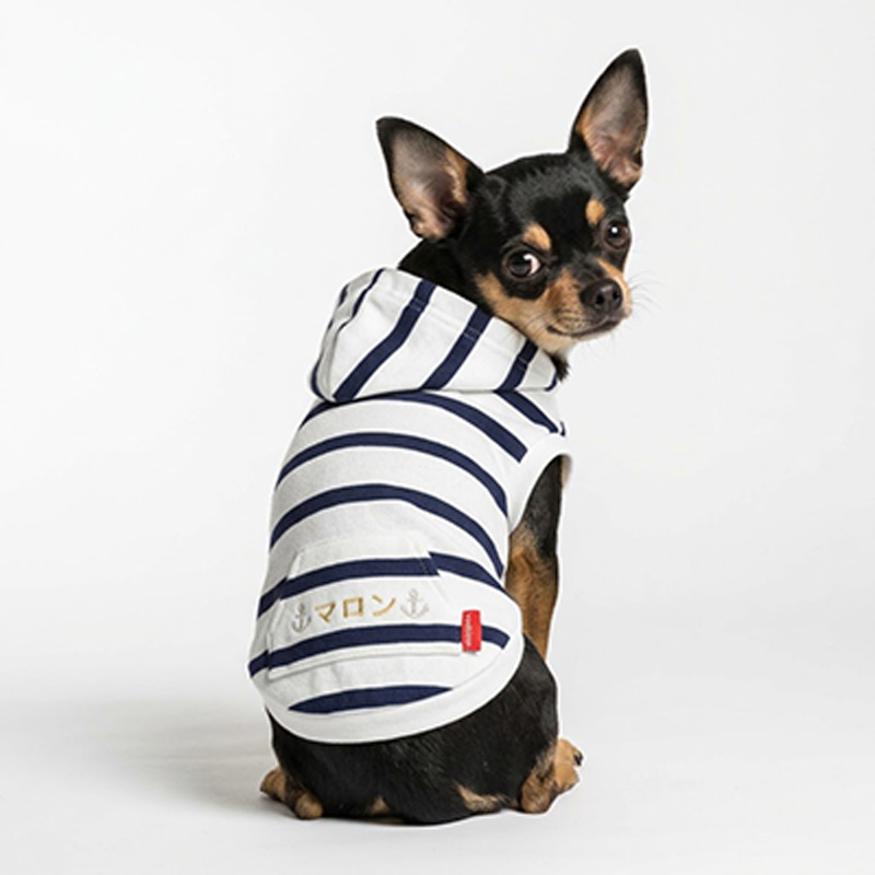 4つのスタイルから選べるマリンボーダーパーカー(2.お名前アンカー刺繍) | 犬服通販ドッグピース