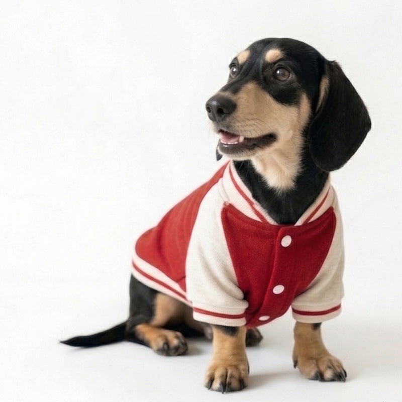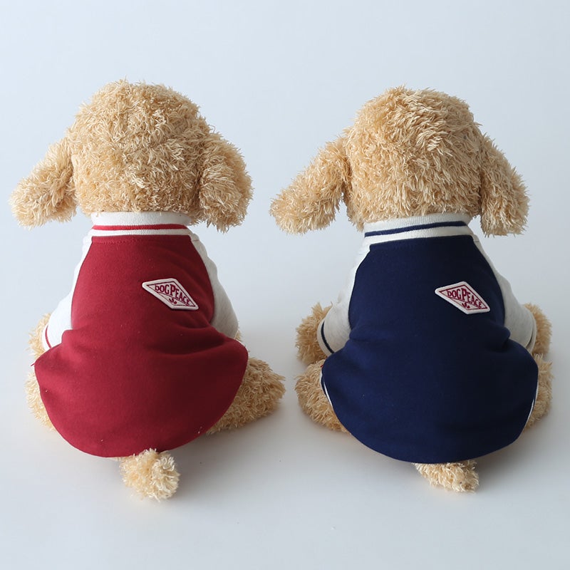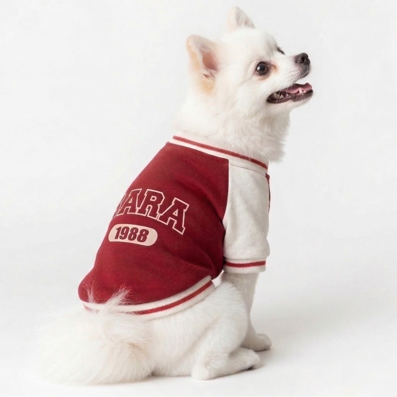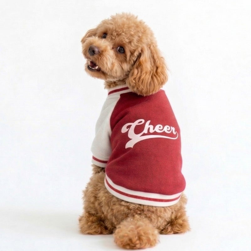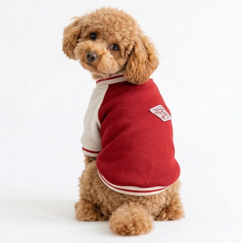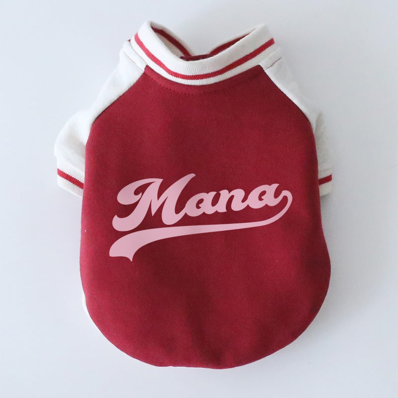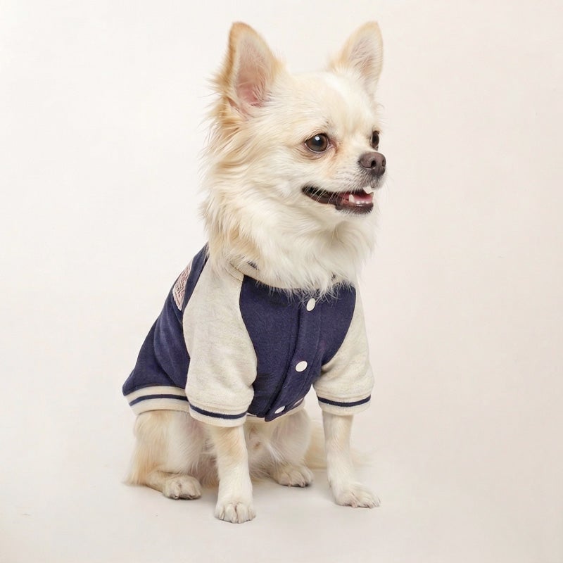 愛犬の毎日に「ちょっと特別」をプラスする、ニットジャージ素材で仕立てた、やわらかく着心地のいいスタジャン風ウェアです。 うしろ姿まで、ちゃんと愛しい。 そんな気持ちをそのまま背中にのせたような、名入れプリントのジャージスタジャンです。