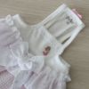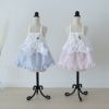 ふわっと広がるフレアスカートと、レースのフリルが重なったウエストには、大きなアイレットレースのリボンがポイントに。