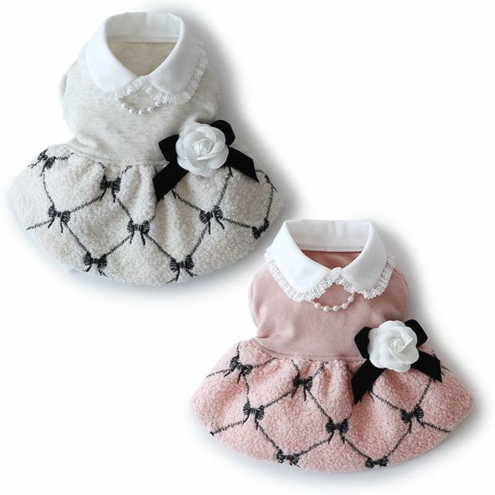 ピンクプリエ・リボン柄コサージュ・ワンピース | 犬服通販ドッグピース