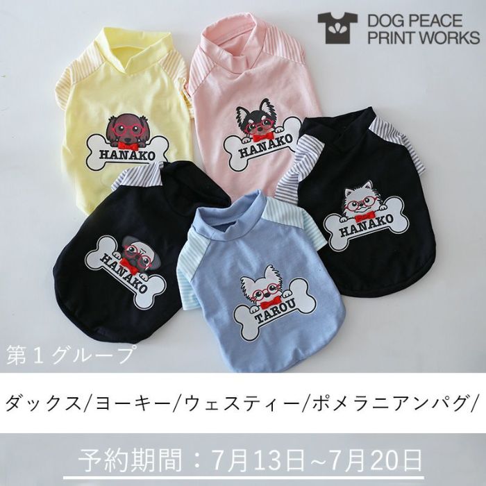 [予約限定]プリントワークス・まるメガネ蝶ネクタイ・ネーミングTシャツ犬・第1グループ | 犬服通販ドッグピース