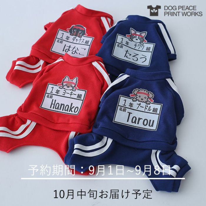 [予約限定ウェア]プリントワークス・運動会ネーミング犬種別ジャージラインカバーオール | 犬服通販ドッグピース