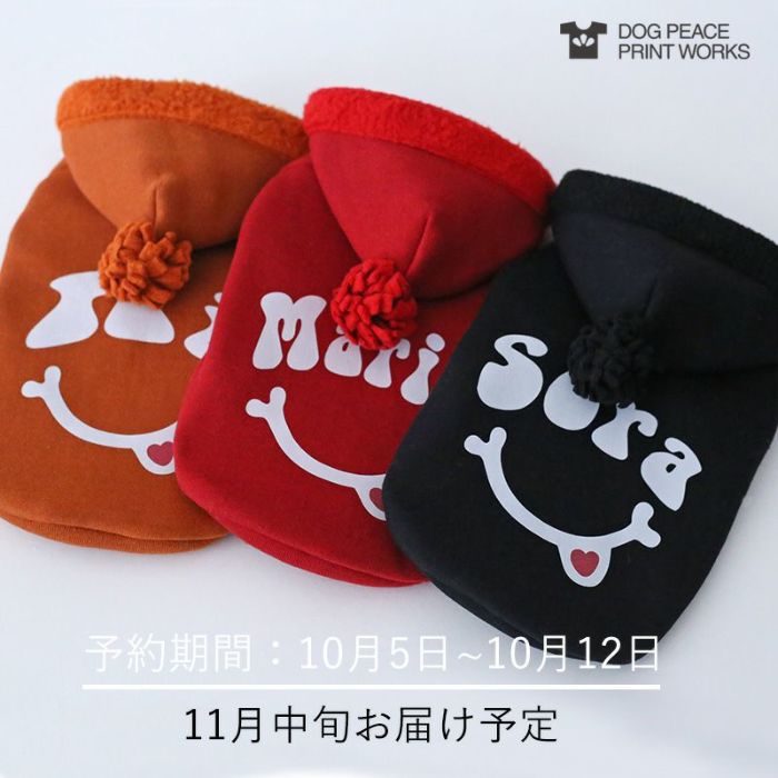 [予約限定]プリントワークス・スマイルフェイス・ネーミングボアフリースパーカー | 犬服通販ドッグピース