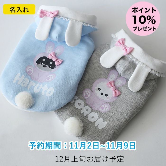 [予約限定]名入れ犬種プリント・うさぎ着ぐるみリボンパーカー | 犬服通販ドッグピース