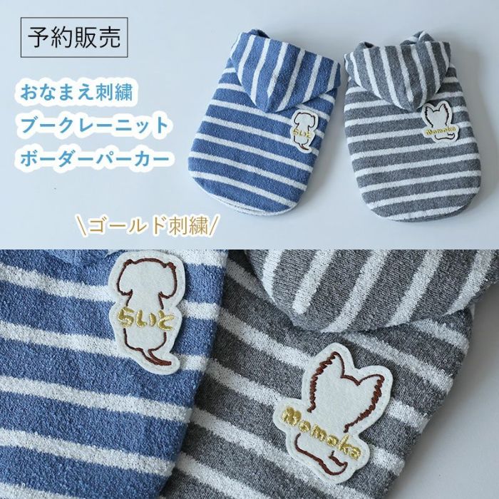 [予約限定ウェア]おなまえ刺繍ブークレーニットボーダーパーカー | 犬服通販ドッグピース