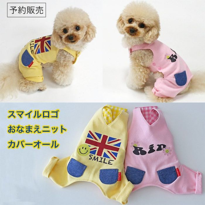 [予約限定ウェア] スマイルロゴおなまえニットカバーオール | 犬服通販ドッグピース