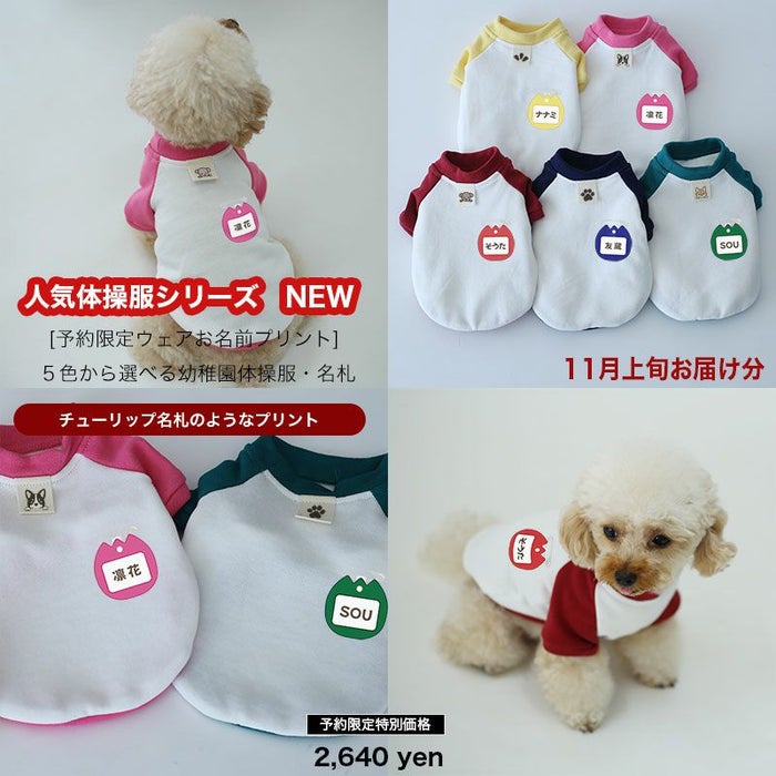 [予約限定ウェアお名前プリント]5色から選べる幼稚園体操服・チューリップ名札 | 犬服通販ドッグピース