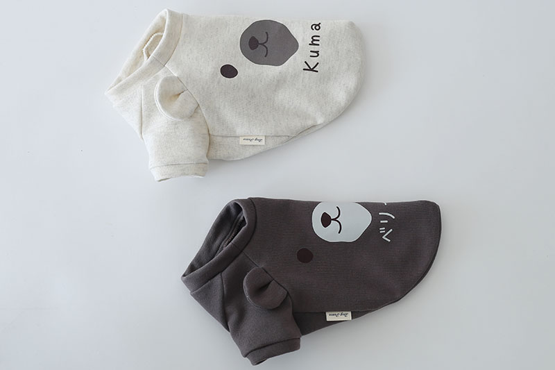 やさしい表情のくまフェイスと、ちょこんと付いたくまみみで、後ろ姿まできゅんとするトレーナーができました。