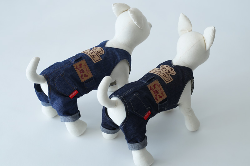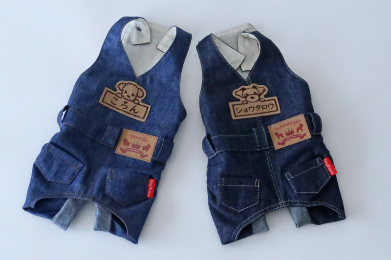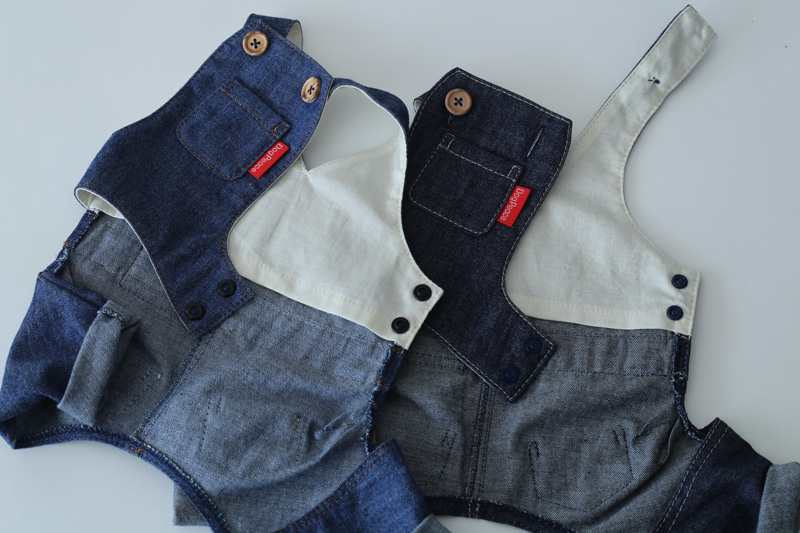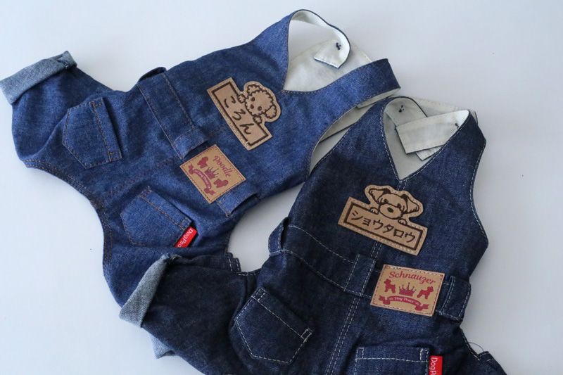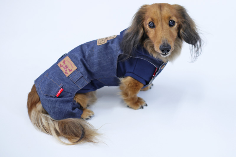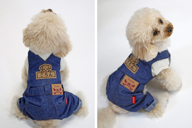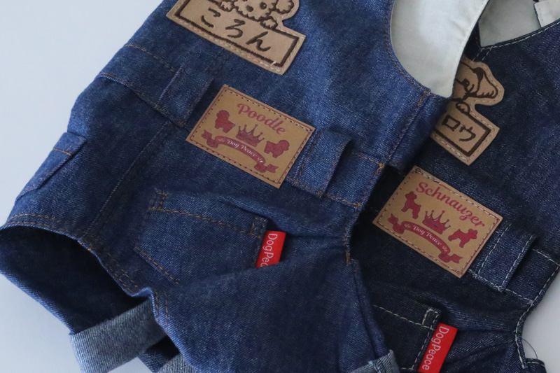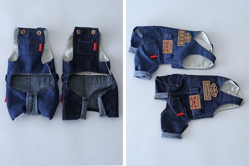 着せてあげたあと悶絶するぐらい可愛い本格的なカバーオールが登場。日本有数のデニム産地岡山のデニムで作ったリアルなデニムカバーオールです。デニムは比較的薄手の柔らかめのデニムをチョイスしています。 ベストやパーカーと重ね着して、本格的な着こなしをお楽しみください。犬種別タグ、お名前刺繍など、細部まで愛犬だけの1着を楽しめます