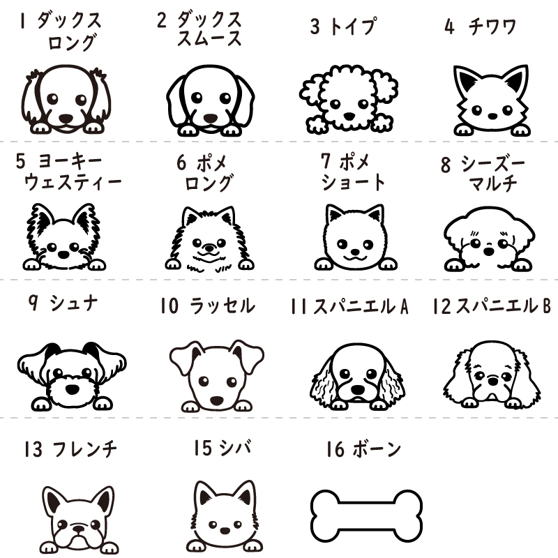 刺繍は14犬種+ボーン(骨型)からお選びください。
