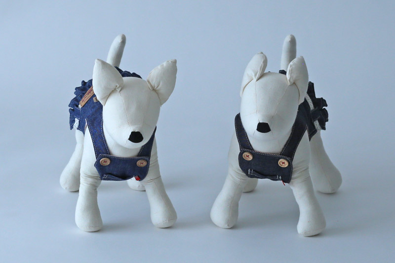 デニムは比較的薄手でやわらかめをセレクト。デニムらしい雰囲気はそのままに、ワンちゃんが動きやすい軽やかな着心地を目指しています。