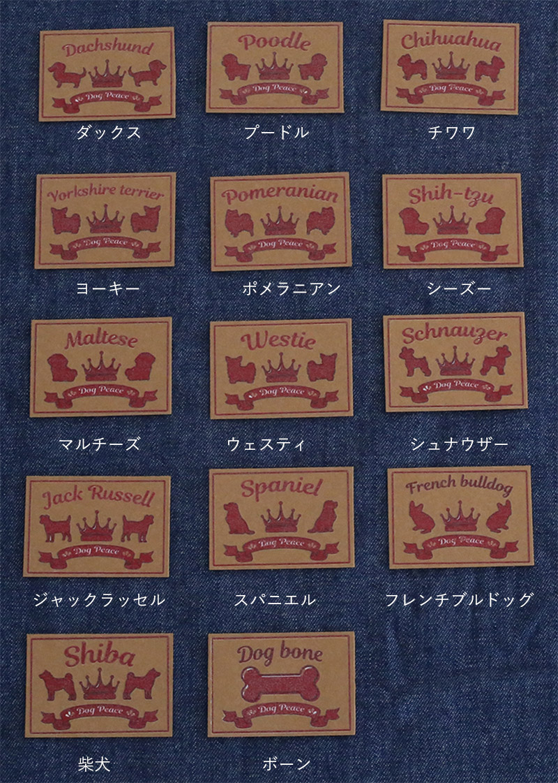 腰のジーンズタグはお選びいただいた刺繍と同じ犬種orボーンがつきます。