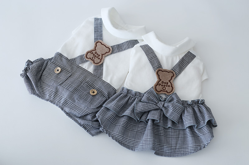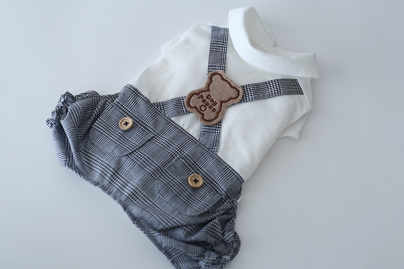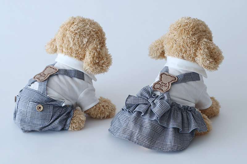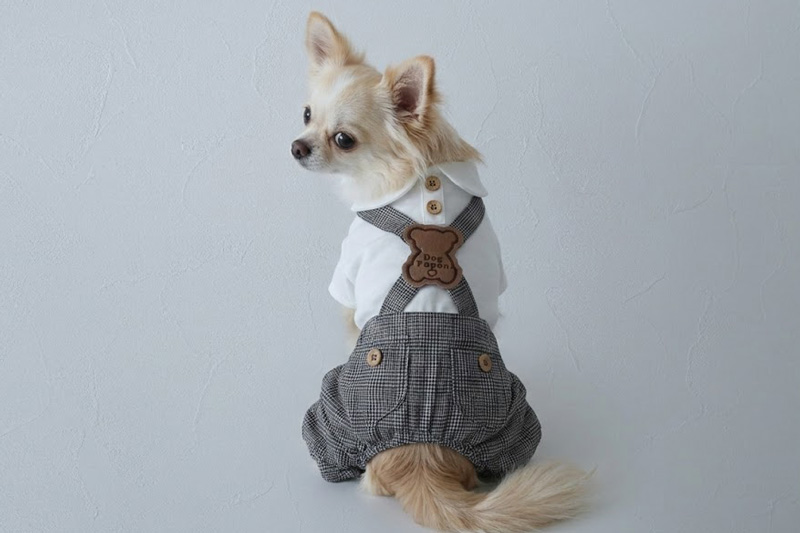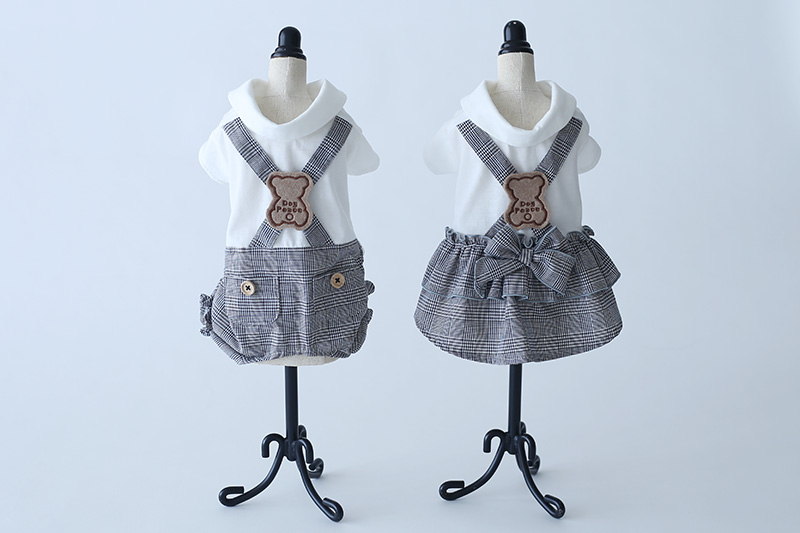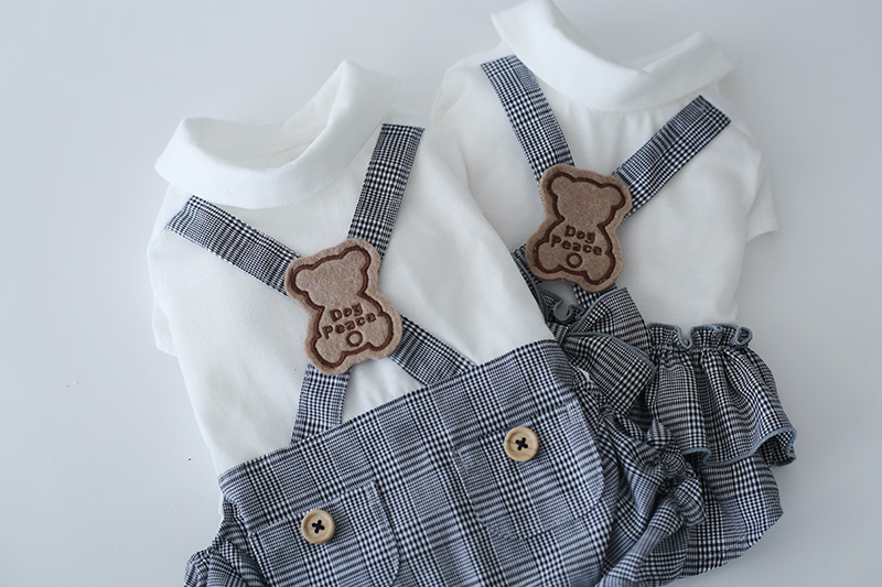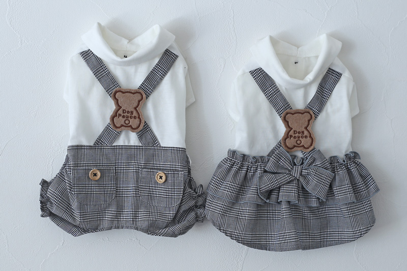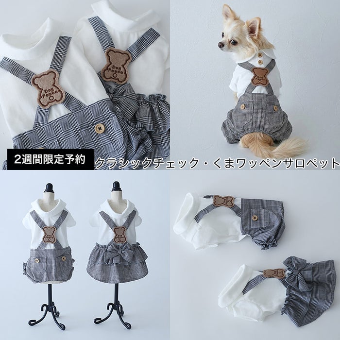 [予約限定ウェア]クラシックチェック・くまワッペン・サロペット | 犬服通販ドッグピース