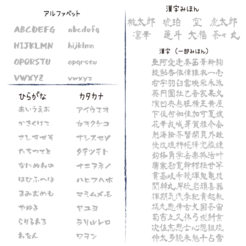 お名前は漢字・ひらがな・カタカナ・アルファベットから選べます。