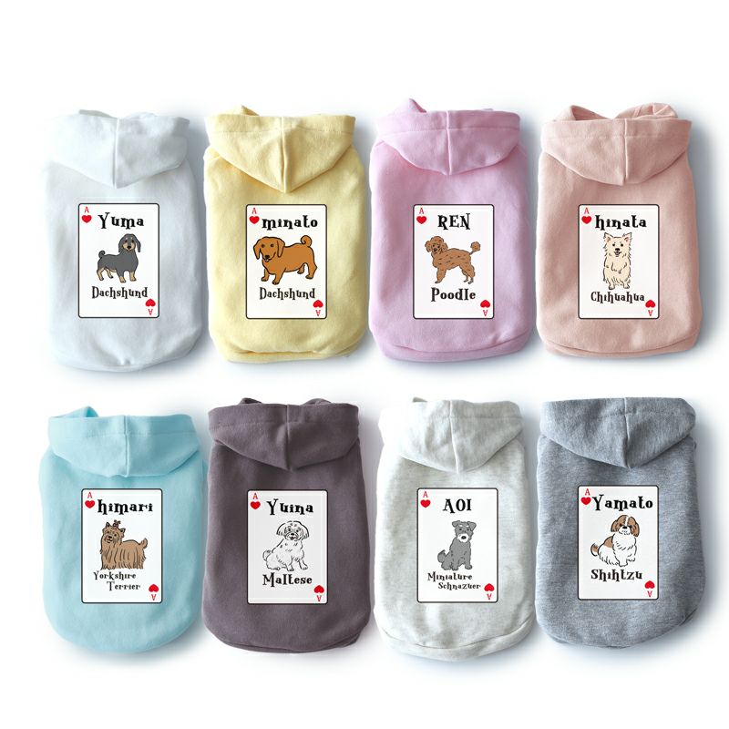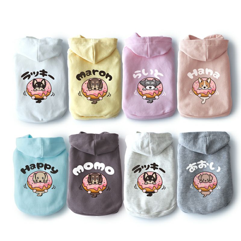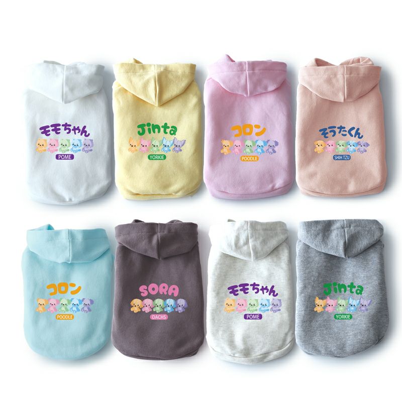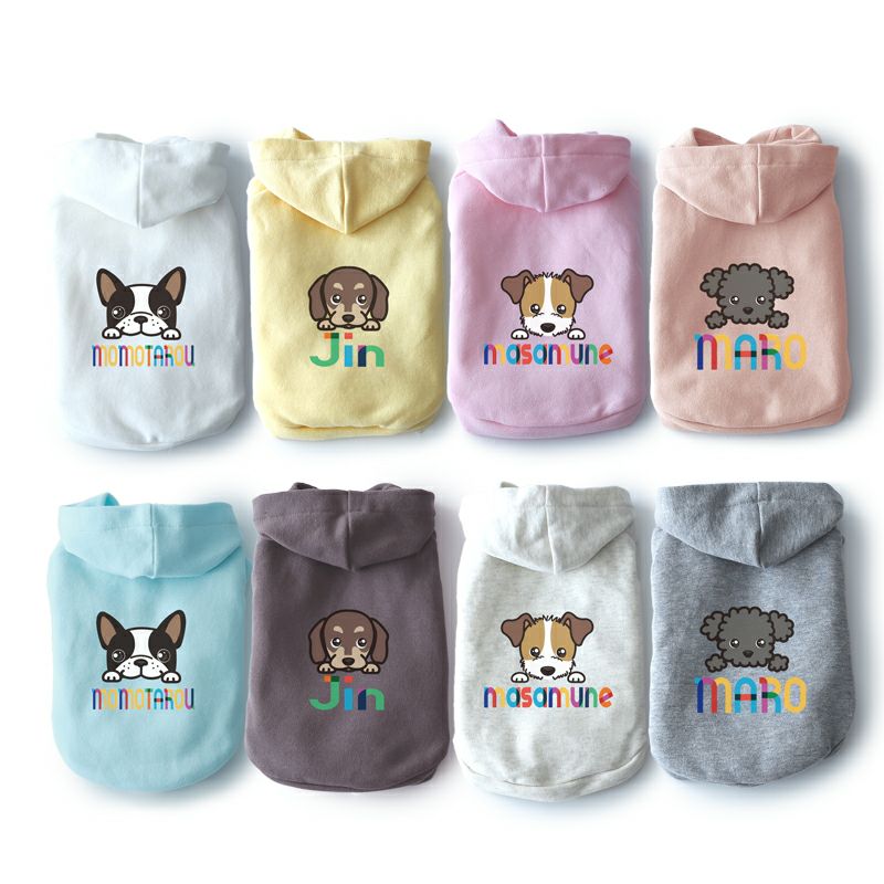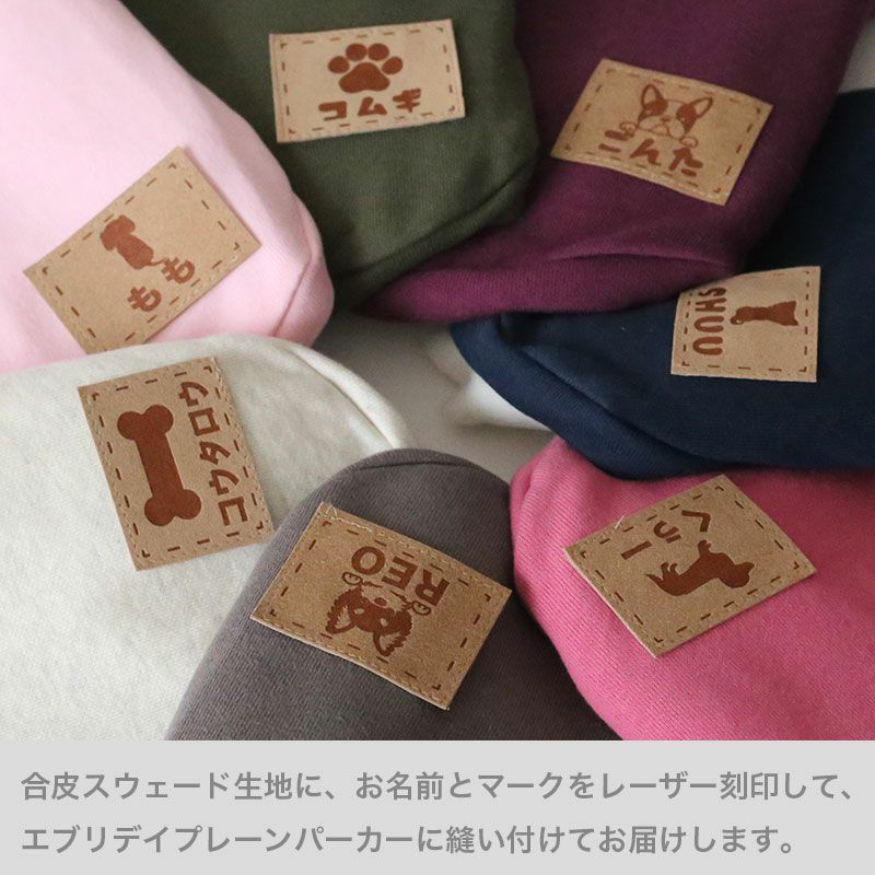 ドッグピースのロングセラーアイテム無地のエブリデイプレーンパーカーに、刺繍やプリントで名入れができます。お名前刺繍やオリジナルプリントを加えれば、世界にひとつだけの特別な1着に。 「うちの子だけ」のおしゃれを楽しみたい方におすすめです。