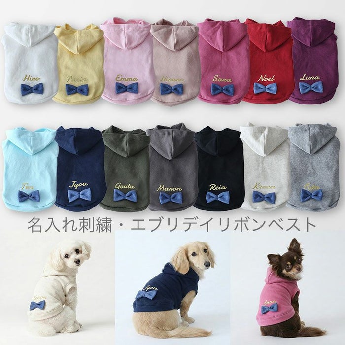 [お名前刺繍]エブリデイ・リボンパーカー | 犬服通販ドッグピース