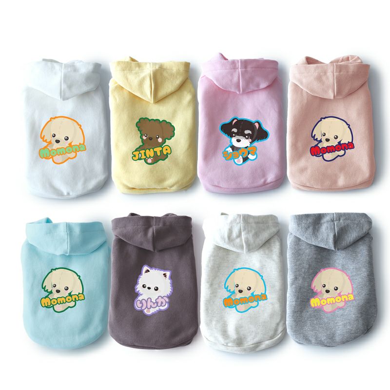 ドッグピースのロングセラーアイテム無地のエブリデイプレーンパーカーに、刺繍やプリントで名入れができます。お名前刺繍やオリジナルプリントを加えれば、世界にひとつだけの特別な1着に。 「うちの子だけ」のおしゃれを楽しみたい方におすすめです。