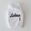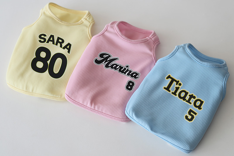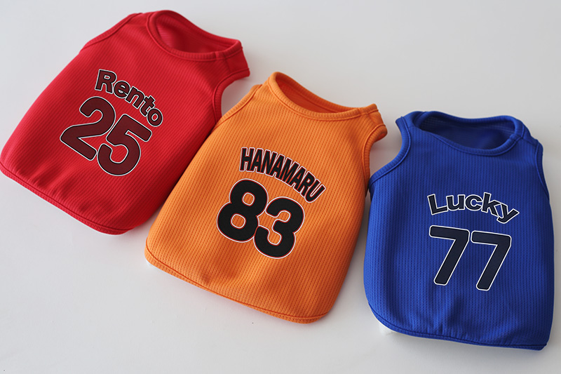 日本のプロ野球チームをイメージしたロゴテイストで、わんこのお名前をプリント。 さらに背番号風の数字を合わせれば、まるで“うちの子専用ユニフォーム”みたいな特別な一枚に。