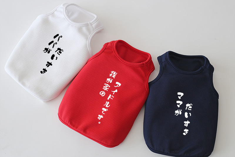 うちの子の気持ち、今日はどのひとことにする? 見た人が思わず笑顔になる、メッセージ入りのヴェリークールタンクトップです。