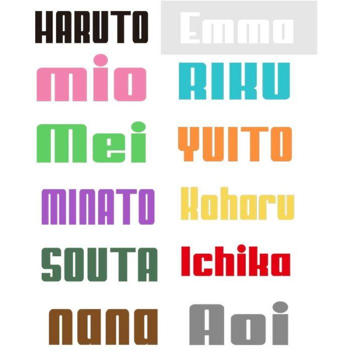 名前以外に文章をいれることも可能です。サイズは横幅に合わせますので文字数が多いと、文字は小さくなります。